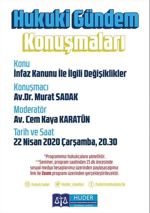 HABERLER Ramazan Bayramımız Mübarek OlsunMayıs 24, 2020/HABERLER Tamamını Oku Mehmet Ali Öztürk’e ÖzgürlükMayıs 17, 2020/HABERLER Tamamını Oku “Baroların Seçim Sistemi Değişikliği” Basın AçıklamasıMayıs 12, 2020/HABERLER Tamamını Oku Basın AçıklamasıNisan 29, 2020/HABERLER Tamamını Oku Kişisel Verilerin Korunması EğitimiNisan 29, 2020/HABERLER Tamamını Oku Huder Akademi Gençlik Kampı EtkinliğiNisan 15, 2020/HABERLER Tamamını Oku Yrd. Doç. Dr. M. Sinan Kılıçoğlu Hocamızla hukuk üzerine sohbet ettik.Nisan 15, 2020/HABERLER Tamamını Oku Prof. Dr. Refik Korkusuz hocamızdan “Müslüman Hukukçunun Vizyonu ve Misyonu” konulu sunumNisan 15, 2020/HABERLER Tamamını Oku Mesleğin Vizyonu konulu seminerNisan 15, 2020/HABERLER Tamamını Oku Etkinlikler Sosyal Medya